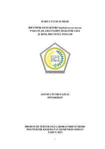 Assyifa Putri, Azlia (2023) IDENTIFIKASI BAKTERI Staphylococcus aureus PADA PLAK GIGI PASIEN DI KLINIK GIGI Jl. BOM, HELVETIA TENGAH. Diploma thesis, Poltekkes Kemenkes Medan.