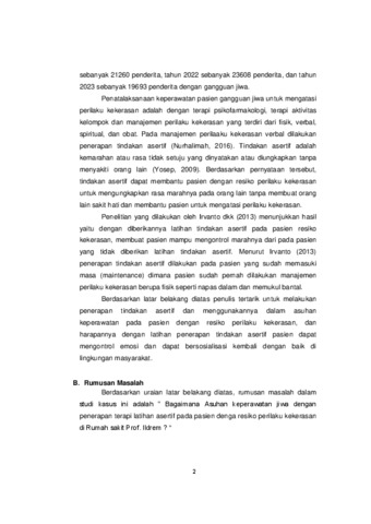 Kata Kunci: Skizofrenia, Terapi Latihan Asertif, Resiko Perilaku Kekerasan.