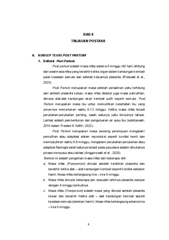Post partum adalah masa nifas selama 6 minggu (40 hari) dihitung dari awal