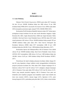 Menurut World Healtd Organization (WHO) pada tahun 2017 AKI dari 216 per 100.000 kelahiran hidup, AKB sebesar 19 per 1.000 kelahiran hidup. AKI di Indonesia yaitu 305 per 100.000 kelahiran hidup.Sedangkan AKB 24 per 1.000 kelahiran hidup.Untuk Provinsi Sumatera Utara tahun 2017 AKI dilaporkan sebesar 85 per 100. 000 kelahiran hidup dan AKB sebesar 22,23 per 1. 000 kelahiran hidup upaya dalam menurunkan AKI dan AKB telah dilakukan di Indonesia yaitu adanya P4K, program EMAS dan upaya dengan continuity care