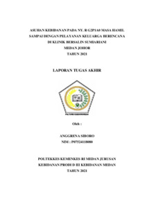 Siboro, Anggrena (2021) Asuhan Kebidanan pada NY. R G2p1a0 Masa Hamil Sampai dengan Pelayanan Keluarga Berencana di Klinik Bersalin Sumiariani Medan Johor Tahun 2021. Diploma thesis, Poltekkes Kemenkes Medan.
