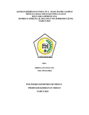 Sitanggang, Erkina (2021) Asuhan Kebidanan pada Ny.L Masa Hamil Sampai dengan Masa Nifas dan Pelayanan Keluarga Berencana di Bidan Afriana Jl.Selamat No 58 Bromo Ujung Tahun 2021. Diploma thesis, Poltekkes Kemenkes Medan.