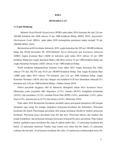 Berdasarkan World Health Organization (WHO, 2019) AKI dan AKB yang terjadi pada tahun 2019 adalah 810 per 100.000 kelahiran hidup (KH) sedangkan AKB sebesar 28 per 1.000 kelahiran hidup. Keberhasilan upaya kesehatan ibu di antaranya dapat dilihat dari penurunan Angka Kematian Ibu (AKI) dari tahun ke tahun. Salah satu cara menurunkan AKI dan AKB adalah dengan cara memberikan asuhan secara Continuity of Care. Tujuan continuity of care adalah memberikan asuhan kebidanan kepada Ny. L dari hamil trimester III mulai ANC, bersalin, nifas, bayi baru lahir, dan pelayanan KB di PMB AFRIANA dengan menggunakan pendekatan manajemen kebidanan.