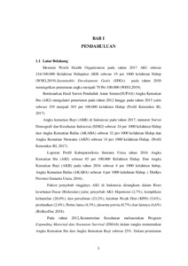 Menurut World Health Organization pada tahun 2017 AKI sebesar 216/100.000 Kelahiran Hidup, AKB sebesar 19/1000 KH (WHO,2019). Sustainable DevelopmentGoals (SDGs) pada tahun 2030 menargetkan penurunan angka menjadi 70/100.000. Untuk provinsi Sumatera Utara tahun 2016 AKI dilaporkan