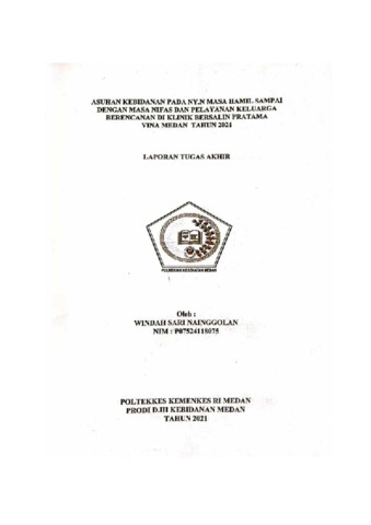 Nainggolan, Windah Sari (2021) Asuhan Kebidanan pada Ny.N Masa Hamil Sampai dengan Masa Nifas dan Pelayanan Keluarga Berencana di Klinik Bersalin Pratama Vina Medan Tahun 2021. Diploma thesis, Poltekkes Kemenkes Medan.