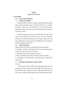Berdasarkan hasil Survei Penduduk Antar Sensus (SUPAS) tahun 2018, AKI (Angka Kematian Ibu) di Indonesia sebesar 305 kematian ibu per 100.000 Kelahiran Hidup. Penyebab kematian ibu adalah Hipertensi (2,7%), komplikasi kehamilan (28,0%), dan persalinan (23,2%), ketuban pecah dini (KPD) (5,6%), perdarahan (2,4%), Partus lama (4,3%), plasenta previa (0,7%) dan lainnya (4,6%). Salah satu cara untuk menurunkan AKI dengan memberikan asuhan berkesinambungan (continuity of care). Tujuan LTA untuk memberikan asuhan secara continuity of care pada ibu hamil, bersalin, nifas, bayi baru lahir dan KB dengan menggunakan pendekatan manajemen dalam bentuk SOAP.