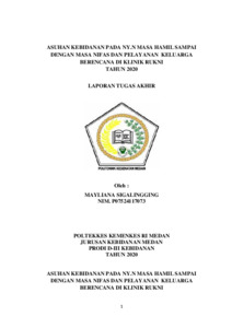 Sigalingging, Mayliana (2020) Asuhan Kebidanan pada NY.N Masa Hamil Sampai dengan Masa Nifas dan Pelayanan Keluarga Berencana di Klinik Rukni Tahun 2020. Diploma thesis, Poltekkes Kemenkes Medan.
