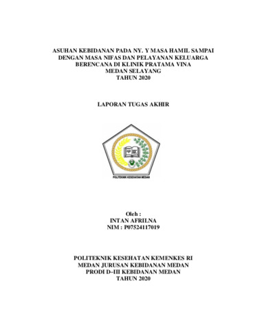 Afrilna, Intan (2020) Asuhan Kebidanan pada NY.Y Masa Hamil Sampai dengan Masa Nifas dan Pelayanan Keluarga Berencana di Klinik Pratama Vina Medan Selayang Tahun 2020. Diploma thesis, Poltekkes Kemenkes Medan.