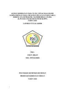 Sirait, Emi P (2021) Asuhan Kebidanan pada NY.N G2P1A0 Masa Hamil Sampai dengan Masa Nifas dan Pelayanan Keluarga Berencana di Praktik Mandiri Bidan Flora Jl. Pusaka Pasar XII Bandar Klippa Tahun 2021. Diploma thesis, Poltekkes Kemenkes Medan.