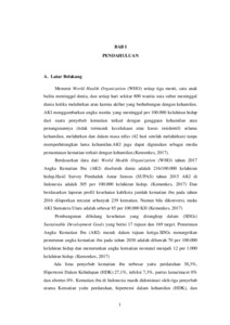 Menurut hasil Survey Penduduk Antar Sensus (SUPAS) tahun 2015 AKI di Indonesia adalah 305 per 100.000 KH dan AKB 22 per 1000 KH (Kemenkes, 2017). Ada lima penyebab kematian ibu terbesar yaitu perdarahan, hipertensi, infeksi, partus lama/macet, dan abortus. SDGs menargetkan penurunan angka kematian ibu pada tahun 2030 adalah dibawah 70 per 100.000 kelahiran hidup dan menurunkan angka kematian neonatal menjadi 12 per 1.000 kelahiran hidup.