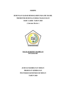 Hasibuan, Dalilah Rezky (2020) Hubungan Kadar Hemoglobin pada Ibu Hamil Trimester III dengan Berat Badan Bayi Baru Lahir Tahun 2020. Diploma thesis, Poltekkes Kemenkes Medan.