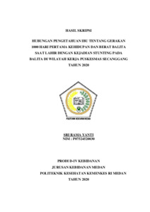 Sri Rama Yanti, Sri Rama (2020) Hubungan Pengetahuan Ibu Tentang Gerakan 1000 Hari Pertama Kehidupan dan Berat Balita Saat Lahir Dengan Kejadian Stunting Pada Balita di Wilayah Kerja Puskesmas Secanggang Tahun 2020. Diploma thesis, Poltekkes Kemenkes Medan.