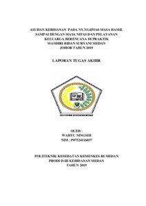 Ningsih, Wahyu (2019) Asuhan Kebidanan pada Ny.Ng4p3a0 Masa Hamil Sampai dengan Masa Nifas dan Pelayanan Keluarga Berencana di Praktik Mandiri Bidan Suryani Medan Johor Tahun 2019. Diploma thesis, Poltekkes Kemenkes Medan.