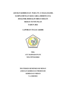 Rahmadawani, Ayu (2021) Asuhan Kebidanan pada Ny. E Masa Hamil Sampai dengan Keluarga Berencana di Klinik Bersalin Bidan Helen Medan Tuntungan Tahun 2021. Diploma thesis, Poltekkes Kemenkes Medan.