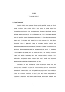 Hasil Riset Kesehatan Dasar ( Rikesdas) yang di keluarkan Badan Peneliti dan pengembangan Kesehatan (Baritbankes) Kemenkes RI tahun 2018 menyatakan prevalensi anemia pada ibu hamil di Indonesia sebesar 48,9%. Di Sumatera Utara dilakukan tes darah pada ibu hamil dari 9.377 ibu hamil di tiga kota yakni kota Medan, Pematang ianta dan Kisaran didapati sebanyak 33% diantaranya mengalami anemia.