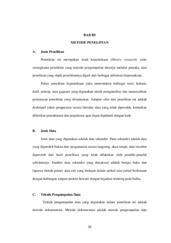 Penelitian ini merupakan studi kepustakaan (library research) yang bertujuan untuk mengetahui hubungan asupan protein hewani dengan kejadian stunting pada balita. Jenis data yang digunakan dalam penelitian ini adalah data sekunder yang bersumber dari beberapa literatur. Literatur yang sesuai dengan kriteria dan tema, selanjutnya dilakukan review guna mencari persamaan, perbedaan dan kesimpulannya.