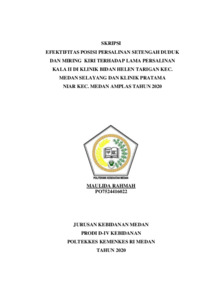 Rahmah, Maulida (2020) Efektifitas Posisi Persalinan Setengah Duduk dan Miring Kiri Terhadap Lama Persalinan Kala II di Klinik Bidan Helen Tarigan Kec. Medan Selayang Dan Klinik Pratama Niar Kec. Medan Amplas Tahun 2020. Diploma thesis, Poltekkes Kemenkes Medan.