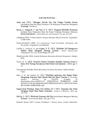Kata kunci : Mual muntah, daun mint, jahe, ibu hamil primigravida, trimester 1