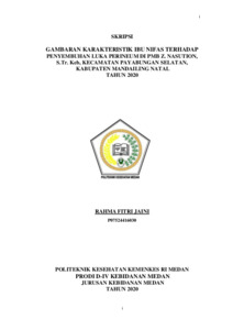 Jaini, Rahma Fitri (2020) Gambaran Karakteristik Ibu Nifas Terhadap Penyembuhan Luka Perineum di PMB Z. Nasution, S.Tr. Keb,Kecamatan Payabungan Selatan, Kabupaten Mandailing Natal Tahun 2020. Diploma thesis, Poltekkes Kemenkes Medan.