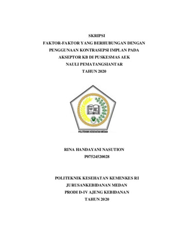 Nasution, Rina Handayani (2020) Faktor-Faktor yang Berhubungan dengan Penggunaan Kontrasepsi Implan pada Akseptor KB di Puskesmas AEK Nauli Pematangsiantar Tahun 2020. Diploma thesis, Poltekkes Kemenkes Medan.