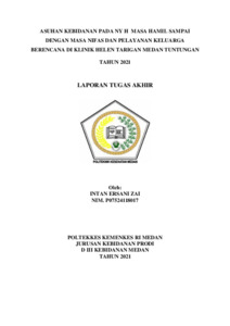 Zai, Intan Ersani (2021) Asuhan Kebidanan pada NY.H Masa Hamil Sampai dengan Masa Nifas dan Pelayanan Keluarga Berencana di Klinik Helen Tarigan Medan Tuntungan Tahun 2021. Diploma thesis, Poltekkes Kemenkes Medan.