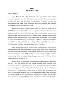 Angka Kematian Ibu dan Bayi di Indonesia masih merupakan masalah yang harus mendapat prioritas dengan jumlah AKI sebesar 305/100.000 KH dan AKB sebesar 21/1.000 KH. Salah satu upaya penurunan AKI dan AKB di Indonesia yaitu pelaksanaan asuhan dengan konsep continuity of care, yaitu pelayanan berkesinambungan kepada ibu sejak hamil, bersalin, nifas, dengan melakukan pencatatan dan pendokumentasian, yang mencakup informasi tentang kondisi dan perkembangan kesehatan reproduksi serta semua kegiatan yang dilakukan bidan dalam memberikan asuhan.