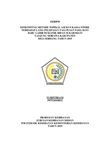 Nurfitriani, Nurfitriani (2019) Efektivitas Metode Topikal ASI dan Kassa Steril Terhadap Lama Pelepasan Tali Pusat pada Bayi Baru Lahir di Klinik Bidan Sukarmiati Tanjung Morawa Kabupaten Deli Serdang Tahun 2019. Diploma thesis, Poltekkes Kemenkes Medan.