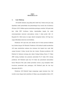 Pemberian ASI sejak hari pertama tidak selalu mudah karena banyak ibu yang menghadapi masalah dalam melakukannya. Kejadian yang sering terjadi pada hari pertama menyusui adalah sulitnya ASI keluar atau produksi ASI ibu sedikit dan bayinya tidak mau menghisap. Hal ini membuat ibu berpikir bahwa bayi mereka tidak akan mendapat cukup ASI sehingga ibu sering mengambil langkah berhenti menyusui dan menggantinya dengan susu formula. Desain Penelitian ini menggunakan Quasi Eksperimen dengan pendekatan pretest and posttest design, dengan populasi seluruh ibu menyusui 0-6 Bulan di PMB Suryani Kecamatan Medan Johor sebanyak 52 orang. Sampel dalam penelitian ini menggunakan teknik purposive sampling sebanyak 30 responden. Hasil penelitian ini menunjukkan ada perbedaan berat badan bayi sebelum intervensi dan sesudah intervensi dengan nilai p value = 0,000 < α (0,05) dimana terjadi peningkatan berat badan bayi yaitu 350 gram. Kesimpulan dari penelitian ini Ada pengaruh pemberian susu kedelai terhadap peningkatan produksi ASI pada ibu menyusui 0-6 bulan di PMB Suryani Kecamatan Medan Johor Tahun 2019 maka diharapkan agar tenaga kesehatan khususnya bidan, dapat memberikan penyuluhan kepada ibu hamil agar dapat membudidayakan oalahan kacang kedelai sehingga dapat digunakan sebagai salah satu alternatif pelancar ASI.