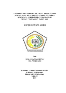 Manurung, Berliana (2020) Asuhan Kebidanan Pada Ny S Masa Hamil Sampai Dengan Masa Nifas dan Pelayanan Keluarga Berencana di Klinik Pratama Hadijah Medan Perjuangan Tahun 2019. Diploma thesis, Poltekkes Kemenkes Medan.