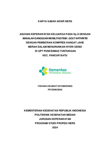 Situmorang, Yohana Helmiati (2024) ASUHAN KEPERAWATAN KELUARGA PADA Ny.S DENGAN MASALAH GANGGUAN MOBILITAS FISIK: GOUTH ARTHRITIS DENGAN PEMBERIAN KOMPRES HANGAT JAHE MERAH DALAM MENURUNKAN NYERI SENDI DI UPT PUSKESMAS TUNTUNGAN KEC. PANCUR BATU. Diploma thesis, Poltekkes Kemnkes Medan.