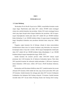 Berdasarkan Kemenkes RI pada tahun 2018 sampai dengan 2019, AKI terjadi sebanyak 305 dari 100.000 KH sedangkan AKB 24 dari 1000 KH. Sedangkan menurut World Health Organization (WHO), AKI secara global terjadi pada tahun 2019 adalah 810 per 100.000 Kelahiran Hidup (KH) sedangkan AKB 28 dari 1000 KH. Keberhasilan upaya kesehatan ibu diantaranya dapat dilihat dari penurunan Angka Kematian Ibu (AKI) dari tahu ke tahun. Salah satu upaya yang dapat dilakukan untuk mengurangi angka kematian ibu dan bayi yaitu, anjuran kemenkes RI dengan konsep Continuity of care. Tujuan Continuity of care adalah memberikan asuhan kebidanan kepada Ny. SW dari hamil Trimester III mulai dari ANC, Bersalin, Nifas, Bayi Baru Lahir dan pelayanan KB Fisiologis di BPM Zahriah dengan menggunakan pendekatan Manajemen kebidanan.
