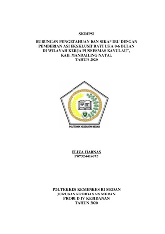Harnas, Eliza (2020) Hubungan Pengetahuan dan Sikap Ibu dengan Pemberian Asi Eksklusif Bayi 0-6 Bulan di Wilayah Kerja Puskesmas Kayulaut, Kab. Mandailing Natal Tahun 2020. Diploma thesis, Poltekkes Kemenkes Medan.