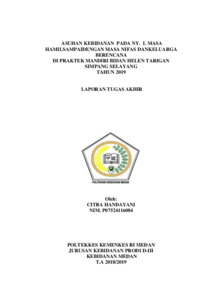 Handayani, Citra (2019) Asuhan Kebidanan pada NY.LD Masa Hamil Sampai dengan Pelayanan Keluarga Berencana di Praktik Mandiri Bidan Helen Taringan Simpang Selayang Tahun 2019. Diploma thesis, Poltekkes Kemenkes Medan.