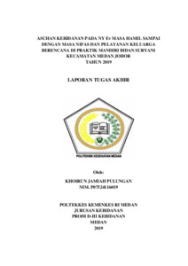 Pulungan, Khoirun Jamiah (2019) Asuhan Kebidanan NY.EV G1P0A0 pada Masa Hamil Sampai dengan Masa Nifas dan Pelayanan Keluarga Berencana di Praktek Mandiri Bidan Suryani Kecamatan Medan ohor Tahun 2019. Diploma thesis, Poltekkes Kemenkes Medan.