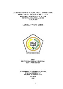 Tarigan, Fransiska Apriyani (2019) Asuhan Kebidanan pada NY.N Masa Hamil Sampai dengan Masa Nifas dan Pelayanan Keluarga Berencana di Klinik Pratama Vina Medan Baru Tahun 2019. Diploma thesis, Poltekkes Kemenkes Medan.
