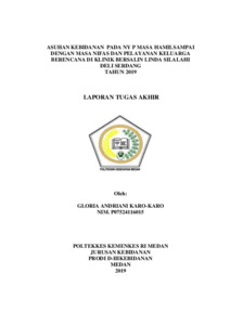 Karo-Karo, Gloria Andriani (2019) Asuhan Kebidanan Pada Ny. P Masa Hamil Sampai Dengan Masa Nifas Dan Pelayanan Keluarga Berencana Di Klinik Linda Silalahi Deli serdang Tahun 2019. Diploma thesis, Poltekkes Kemenkes Medan.