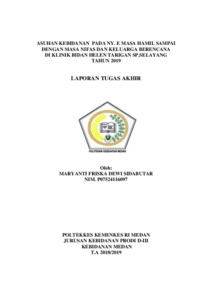 Sidabutar, Maryanti Friska Dewi (2019) Asuhan Kebidanan pada Ny. E Masa Hamil Sampai dengan Masa Nifas dan Pelayanan Keluarga Berencana di Praktik Mandiri Bidan Helen Tarigan Sp.Selayang Tahun 2019. Diploma thesis, Poltekkes Kemenkes Medan.