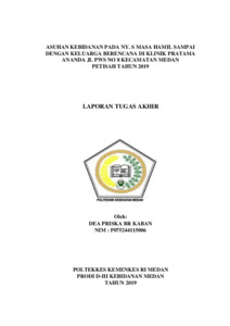 Kaban, Dea Priska Br (2019) Asuhan Kebidanan pada Ny. S Masa Hamil Sampai dengan Keluarga Berencana di Klinik Pratama Ananda Jl PWS No 8 Kecamatan Medan Petisah Tahun 2019. Diploma thesis, Poltekkes Kemenkes Medan.