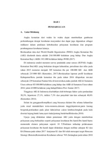 Data world heald organization (WHO) tahun 2017, Angka Kematian Ibu (AKI) di seluruh dunia mencapai 216/100.000 kelahiran Hidup dan Angka Kematian Bayi (AKB) 19/1.000 Kelahiran Hidup. Di indonesia AKI tahun 2017 mencapai 305/100.000 KH dan AKB sebanyak 23/1000 KH. Tujuan asuhan