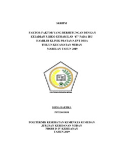 Hartika, Dhina (2019) Faktor-Faktor yang Berhubungan dengan Kejadian Risiko Kehamilan ‘4t’ Pada Ibu Hamil di Klinik Pratama Evi Desa Terjun Kecamatan Medan Marelan Tahun 2019. Diploma thesis, Poltekkes Kemenkes Medan.
