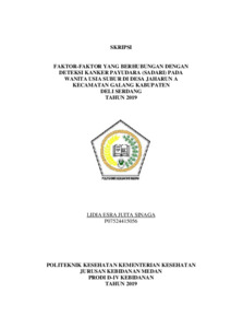 Sinaga, Lidia Esra Juita (2019) Faktor-Faktor yang Berhubungan dengan Deteksi Kanker Payudara (Sadari) pada Wanita Usia Subur di Desa Jaharun A Kecamatan Galang Kabupaten Deli Serdang Tahun 2019. Diploma thesis, Poltekkes Kemenkes Medan.