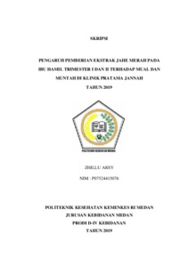 Arsy, Zhillu (2019) Pengaruh Pemberian Ekstrak Jahe Merah pada Ibu Hamil Trimester I Dan II terhadap Mual dan Muntah di Klinik Pratama Jannah Tahun 2019. Diploma thesis, Poltekkes Kemenkes Medan.