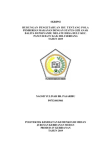 Br. Pasaribu, Naomi Yulinar (2019) Hubungan Pengetahuan Ibu tentang Pola Pemberian Makanan dengan Status Gizi Anak Balita Di Posyandu Melati I Desa Hulu Kec. Pancur Batu Kab. Deli Serdang Tahun 2019. Diploma thesis, Poltekkes Kemenkes Medan.