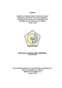 Br. Tarihoran, Greacella Novelia (2019) Hubungan Pengetahuan Dengan Sikap Personal Hygiene Genetalia Remaja Putri Kelas X pada Saat Menstruasi di SMK Swasta Pencawan Medan Tahun 2019. Diploma thesis, Poltekkes Kemenkes Medan.