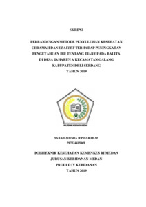 Harahap, Sarah Adinda Ifp (2019) Perbandingan Metode Penyuluhan Kesehatan Ceramah dan Leaflet terhadap Peningkatan Pengetahuan Ibu tentang Diare pada Balita di Desa Jaharun A Kecamatan Galang Kabupaten Deli Serdang Tahun 2019. Diploma thesis, Poltekkes Kemenkes Medan.