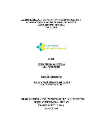 Ginting, Cindy Pebina Br (2025) Asuhan Kebidanan Continuity of Care (COC) Pada Ny. L Dengan Keluhan Nyeri Pinggang di Praktek Mandiri Bidan Repelita. Diploma thesis, Poltekkes Kemenkes Medan.